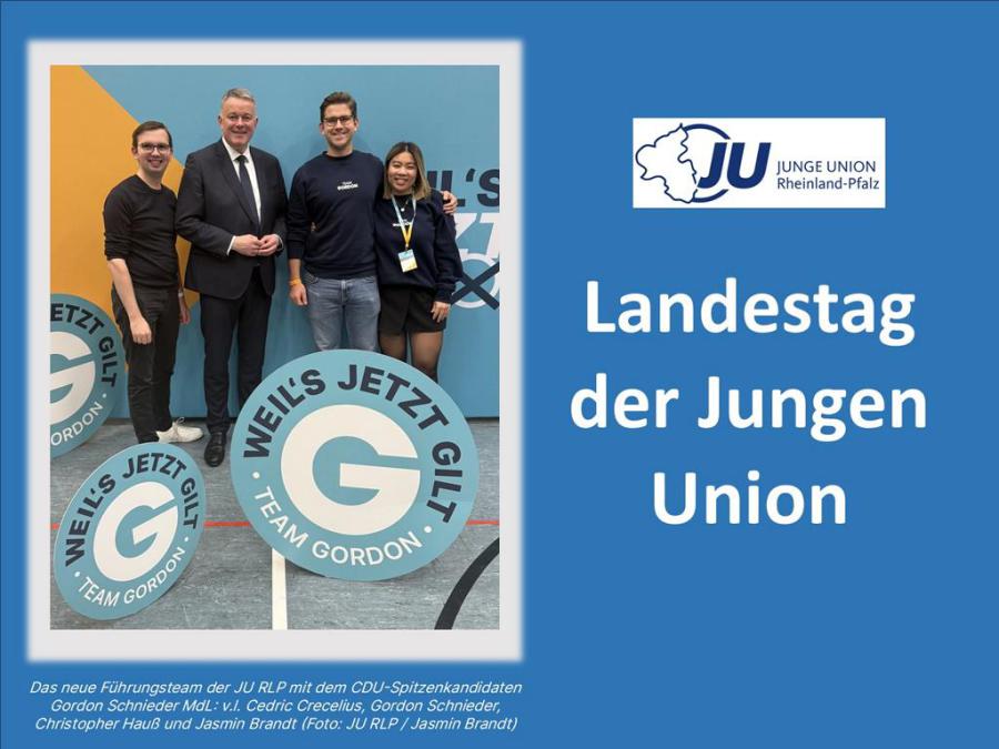 Zum Landesvorsitzenden wurde erneut Christopher Hauß (Germersheim) gewählt. Er kündigte an, die Junge Union wolle mit voller Kraft für ihre Ideen und einen Wahlsieg von Gordon Schnieder MdL kämpfen.